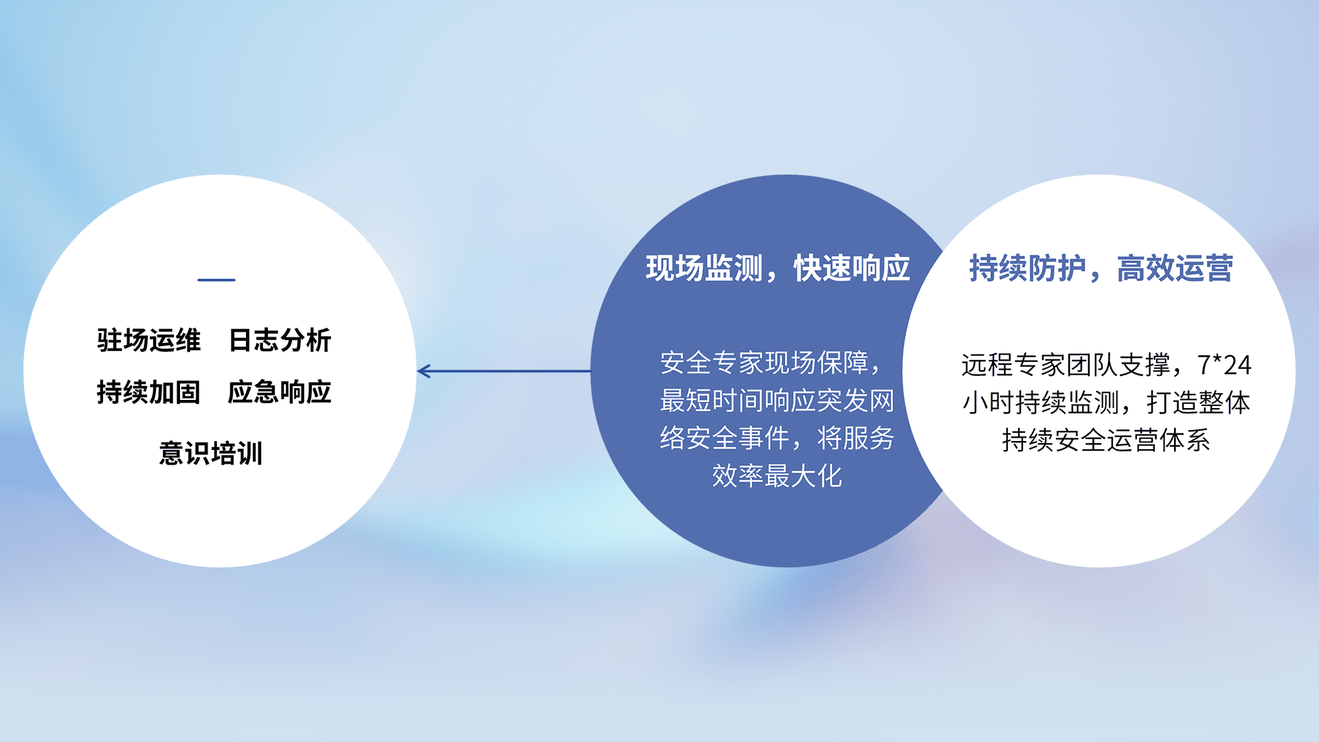 7X24小时持续监测安全事件,保持安全策略有效性,降低资产脆弱性风险,,,精准拦截黑客攻击,,,减少被黑客利用的机会,,第一时间遏制,,降低损失。。。。